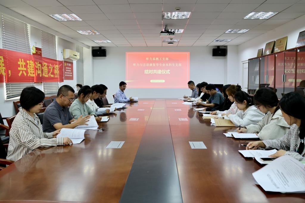 2023年10月11日下午,听力系教工党支部与听力与言语康复学专业本科生党支部开展了共建共学系列活动。会议由毛卫侠主持,双方支部的全体在公司党员参与。