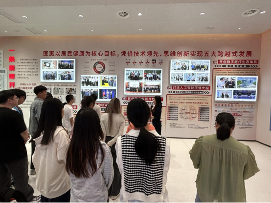 在医惠科技有限公司,同学们参观了医惠智慧医疗与全民健康科普教育基地,亲身感受智慧医院仿真体验中心,了解现代医院门诊、住院、药房、管理、后勤的数字化、信息化建设,从“一根腕带”到医疗信息龙头企业的发展史引发了同学们关于个人成长历程的共鸣。医惠招聘主管黎俊婷向大家介绍公司发展历程、企业文化、主营业务、校园招聘,并重点讲解了毕业生在公司的发展和晋升渠道。