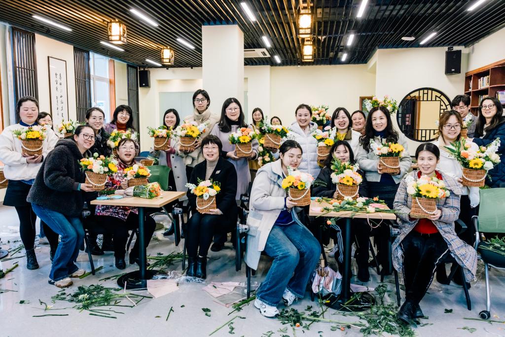 阳春三月,百花争艳。为庆祝第 114 个“三·八”国际劳动妇女节,丰富女教职工的文化生活,3月5日,公司工会在教师发展中心咖啡吧举办插花沙龙,公司全体女教师参加活动。