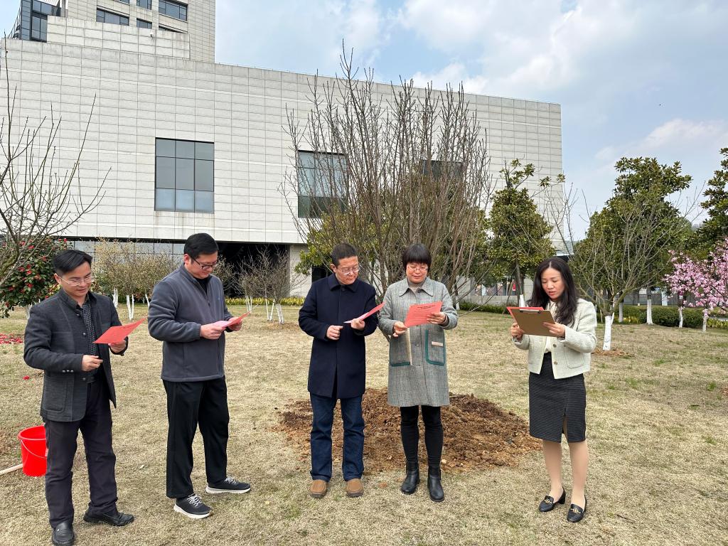 挥锹挖土、扶枝正苗、填土浇水,老师们齐心种下这棵象征清正廉洁的骨里红梅花,并在梅前签订《公司领导干部廉洁自律承诺书》,许下廉洁从政、清廉从教等“十项承诺”。树木如树人,植树活动意义深远,坑挖正、苗扶稳、土夯实,树木才能扎稳根基、挺拔正直。把年轻干部培养成栋梁之材和让小树苗长成参天大树一样,需要夯实根基,勤加“田间管理”,及时“修枝剪叶”,严防出现“歪树”“病树”“烂树”,努力培育出能为全院师生遮风挡雨、巍然挺立的参天大树!