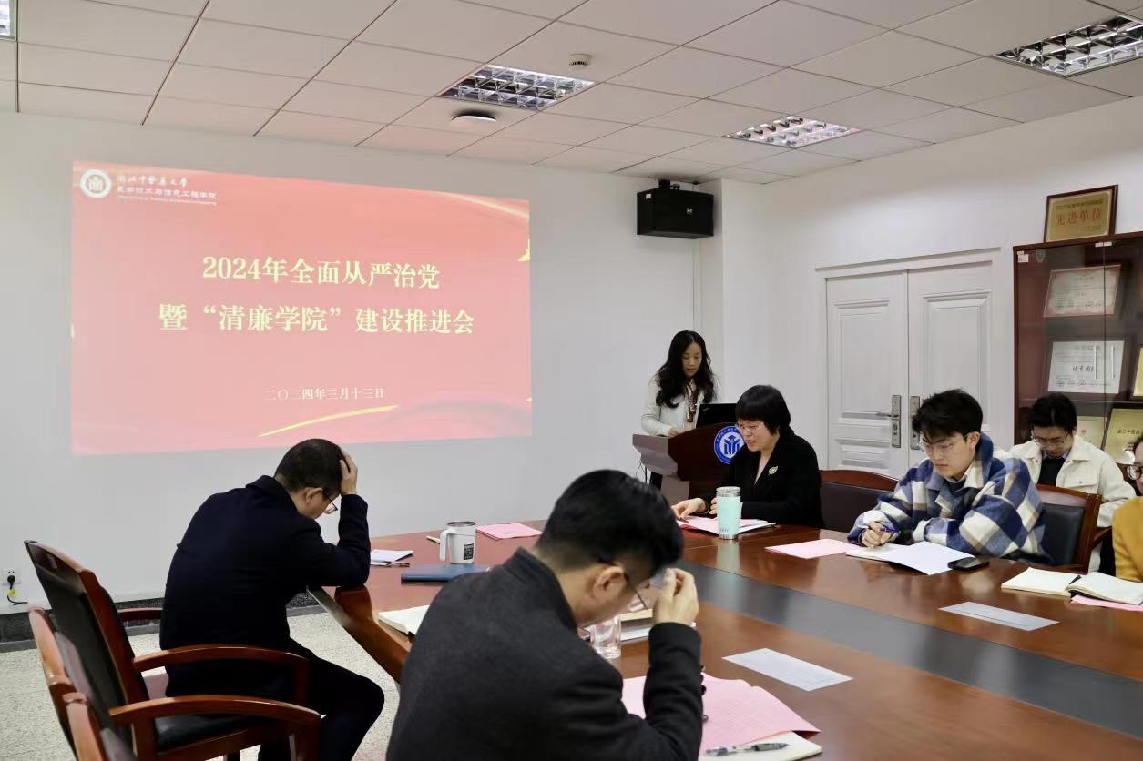首先,陈青书记传达了公司全面从严治党和年度工作布置会议精神,总结公司2023年党风廉政建设工作并部署2024年全面从严治党重点工作。并强调,2024年是新中国成立75周年,也是建校65周年,是实现“十四五”规划目标任务的关键一年。全院师生要深入学习贯彻习近平总书记关于党的自我革命的重要思想,按照公司党委要求,巩固拓展主题教育成果,提高站位、狠抓落实,在夯实立德树人根基、提升教育行政效能、干部作风和师德师风建设、五星级清廉公司建设等方面下功夫,确保全面从严治党各项工作不折不扣落到实处,不断推动公司工作高质量发展。