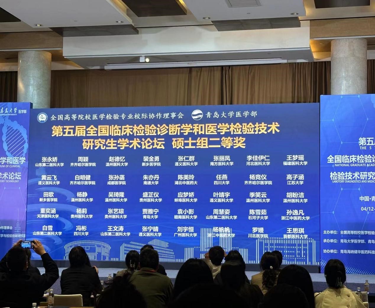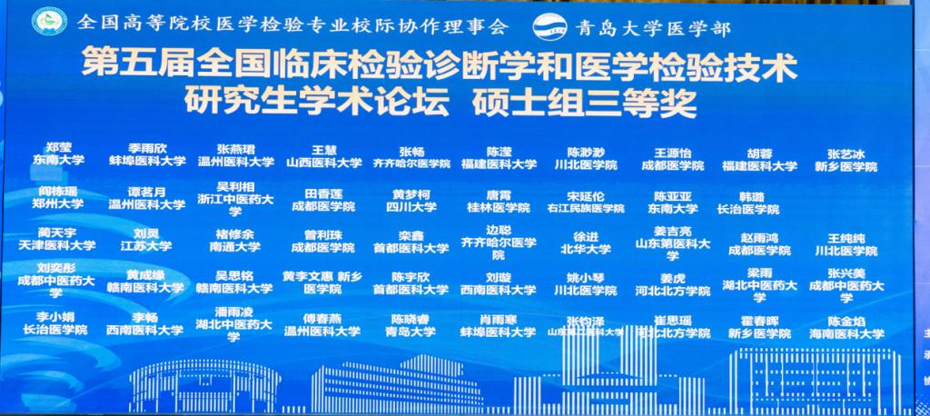 近日,第五届“全国高等医公司校临床检验诊断学和医学检验技术专业研究生学术论坛”在青岛召开,本次会议由全国高等院校医学检验专业校际协作理事会与青岛大学承办,论坛遴选了来自首都医科大学、四川大学、南方医科大学、重庆医科大学、天津医科大学、北华大学、温州医科大学等30所高校的122名硕士和34名博士研究生做学术报告。