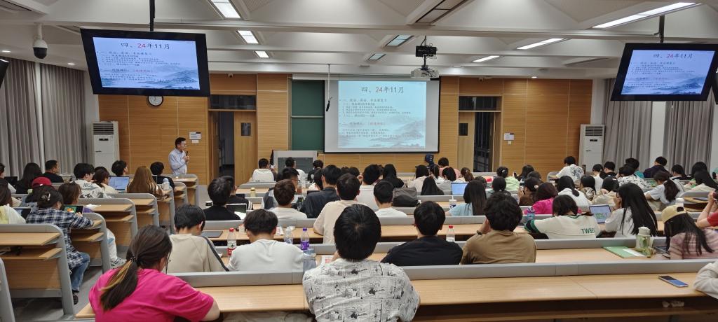 朱老师从“人生的几个Li”出发,指出现阶段同学们可以改变人生的重要转折点是考研。他从不同角度阐述当前考研的政策和形势,指出了同学们在备考中可能会面临的来自学习、生活、情感、意志方面的挑战。建议大家根据自身的兴趣和能力,选择适合自己的考研方向,不断提升专业技能和综合素质,以应对日渐激烈的竞争。进一步地,朱老师强调了积累的重要性,鼓励同学们善用碎片化时间,确保备考有序且高效。讲座最后,朱亚运老师鼓励同学们要保持良好的心态,相信自己一定能够成功上岸。只要认真备考、全力以赴,做好充分的准备,势必能取得好成绩,实现自己的梦想。