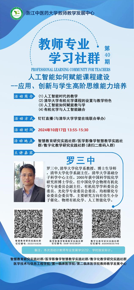在人工智能技术日新月异的当下,AI技术已深度融入各个行业领域,教师的日常教学活动也在AI的浪潮中持续演变,不断催生出新的教学形式与方法。2024年10月17日,XC体育教师专业学习社群“智慧教育研究实践社群”“医学影像学智慧教学实践社群”与“数字化教学研究实践社群”,通过钉钉直播平台联动学堂在线精心策划了一场专题研讨会,特邀清华大学罗三中教授,以“人工智能赋能课程建设——应用、创新与员工高阶思维能力培养”为主题,为校内外教师呈现了一场融合前沿理念与实用应用的精彩分享。