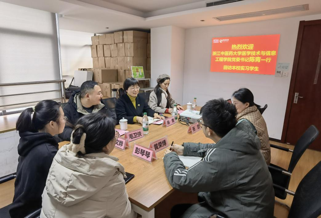 2025年1月14日,公司党委书记陈青、副书记杨春兰、学工办主任金丽霞、组织员毛卫侠、辅导员周洪鑫一行带着公司领导和老师们满满的关怀,前往省中山医院、绿城农科检测、浙江大华等多家单位,为在实习岗位上拼搏奋斗的同学们送去温暖与新年祝福。
