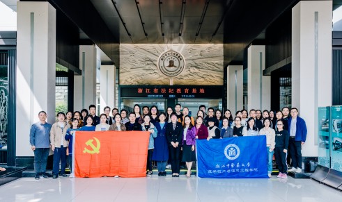 伫立党旗前,拳拳赤子心。重温入党誓词后,教工们在讲解员的带领下参观了“清廉浙江,勇立潮头”“以案为戒,警钟长鸣”两个展厅,感受了浙江省委推进廉政建设的重大决心和实干举措,学习了党的十八大以来我省查处的违纪违法典型案例。一张张悔不当初的脸庞、一封封饱含泪水的自白、一桩桩触目惊心的案例,无不给与会同志带来强烈的心灵冲击。随后的警示教育片及监狱实时场景更从多角度为教工敲响了警钟,提醒大家要时刻筑牢堤坝、守牢底线。